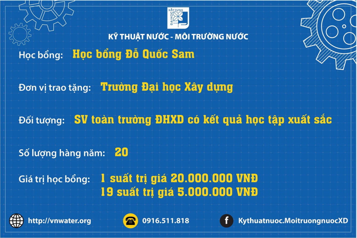 Một số đơn vị luôn đồng hành, tài trợ học bổng cho sinh viên : Hội Cấp thoát nước Việt Nam, Tập đoàn Sơn Hà, CTY Nagaoka, Nhựa Tiền Phong, CTY DNP Water, CTY Nước sạch Hà Nội, CTY Nước sạch Hải Dương, CTY Cấp nước Hải Phòng, Công ty cổ phần VIWASE, CTY CP VICEN, CTY VIETCHEM, CTY VUCICO, và nhiều doanh nghiệp, cựu sinh viên...