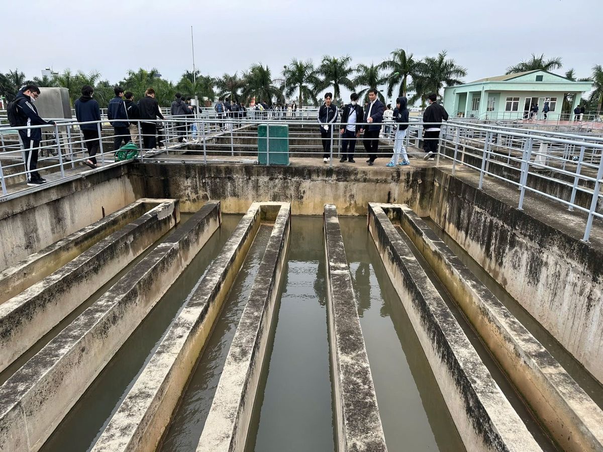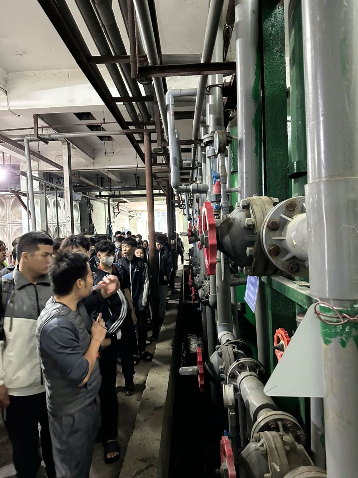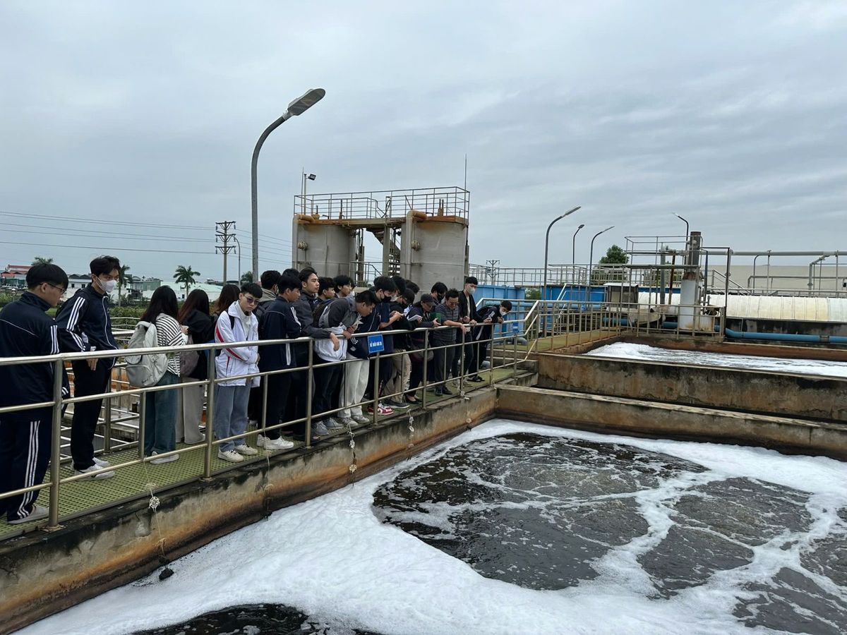 Tại đây, các bạn sinh viên đã có cơ hội quan sát trực tiếp toàn bộ quy trình xử lý nước cấp và nước thải Nhà máy Dệt nhuộm, từ khâu tiếp nhận nguồn nước, vận hành hệ thống xử lý, cho đến công tác kiểm tra chất lượng nước đầu ra, đảm bảo chất lượng sản phẩm và sản xuất an toàn. Bên cạnh đó, các bạn đã được tìm hiểu kỹ quy trình công nghệ để xử lý nước thải dệt nhuộm, một trong những ngành công nghiệp có nước thải ô nhiễm vào bậc nhất. Trải qua nhiều công đoạn xử lý hóa lý, vi sinh, rồi oxy hóa bậc cao, để nước thải đảm bảo quy chuẩn xả thải loại A. Những kiến thức sinh động thực tế đã giúp sinh viên hiểu sâu hơn về nguyên lý, công nghệ và vai trò của kỹ sư ngành nước trong đời sống.