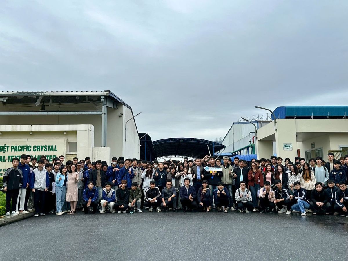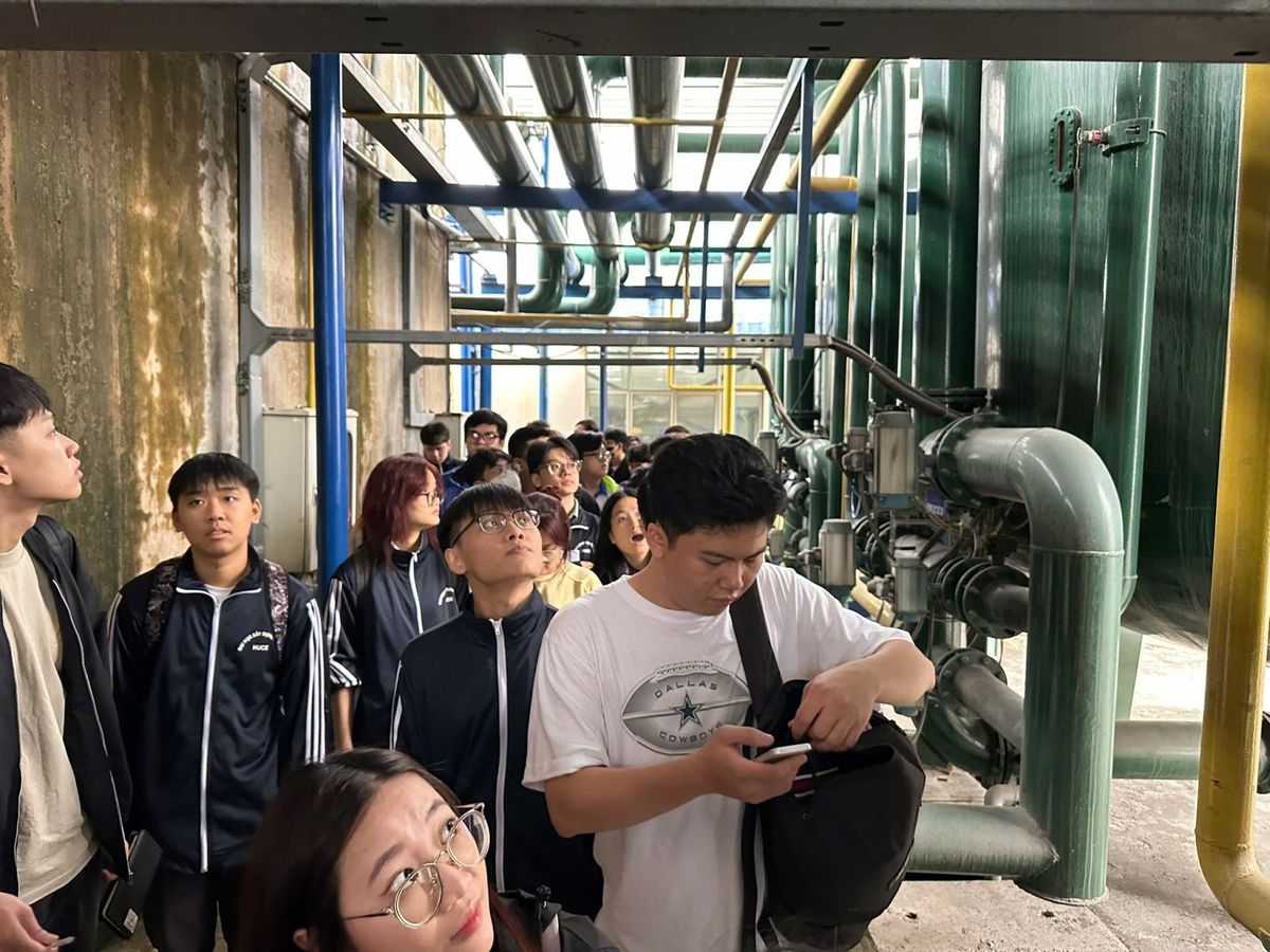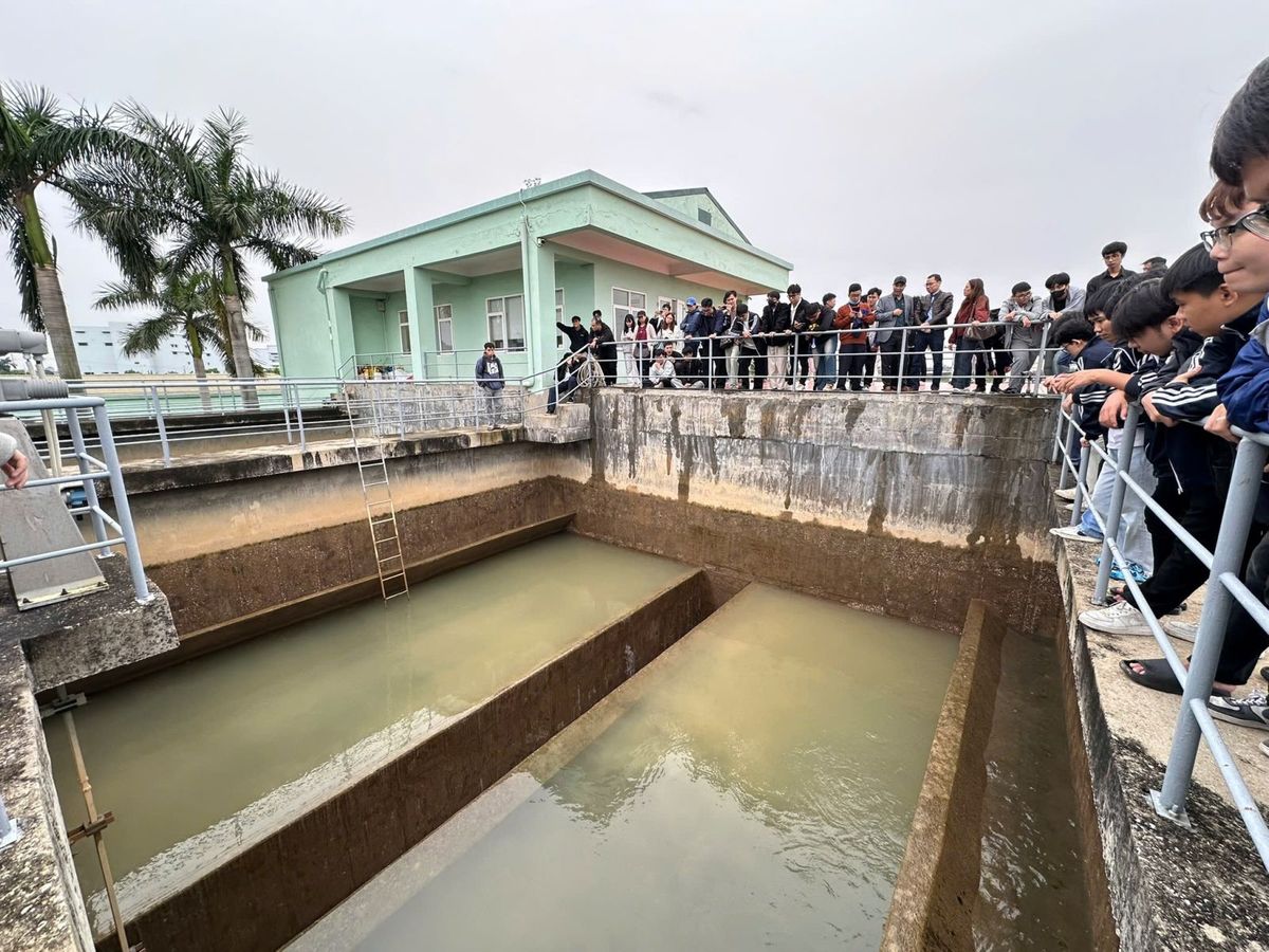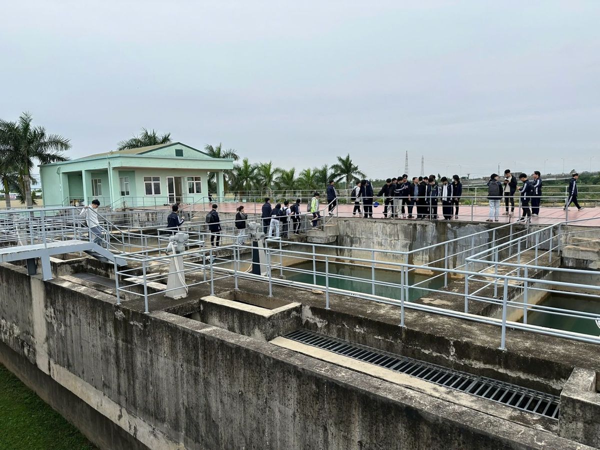 Tại đây, các bạn sinh viên đã có cơ hội quan sát trực tiếp toàn bộ quy trình xử lý nước cấp và nước thải Nhà máy Dệt nhuộm, từ khâu tiếp nhận nguồn nước, vận hành hệ thống xử lý, cho đến công tác kiểm tra chất lượng nước đầu ra, đảm bảo chất lượng sản phẩm và sản xuất an toàn. Bên cạnh đó, các bạn đã được tìm hiểu kỹ quy trình công nghệ để xử lý nước thải dệt nhuộm, một trong những ngành công nghiệp có nước thải ô nhiễm vào bậc nhất. Trải qua nhiều công đoạn xử lý hóa lý, vi sinh, rồi oxy hóa bậc cao, để nước thải đảm bảo quy chuẩn xả thải loại A. Những kiến thức sinh động thực tế đã giúp sinh viên hiểu sâu hơn về nguyên lý, công nghệ và vai trò của kỹ sư ngành nước trong đời sống.