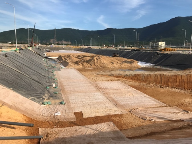 Hình 3. Đưa vật liệu vào bãi lọc CB2 |